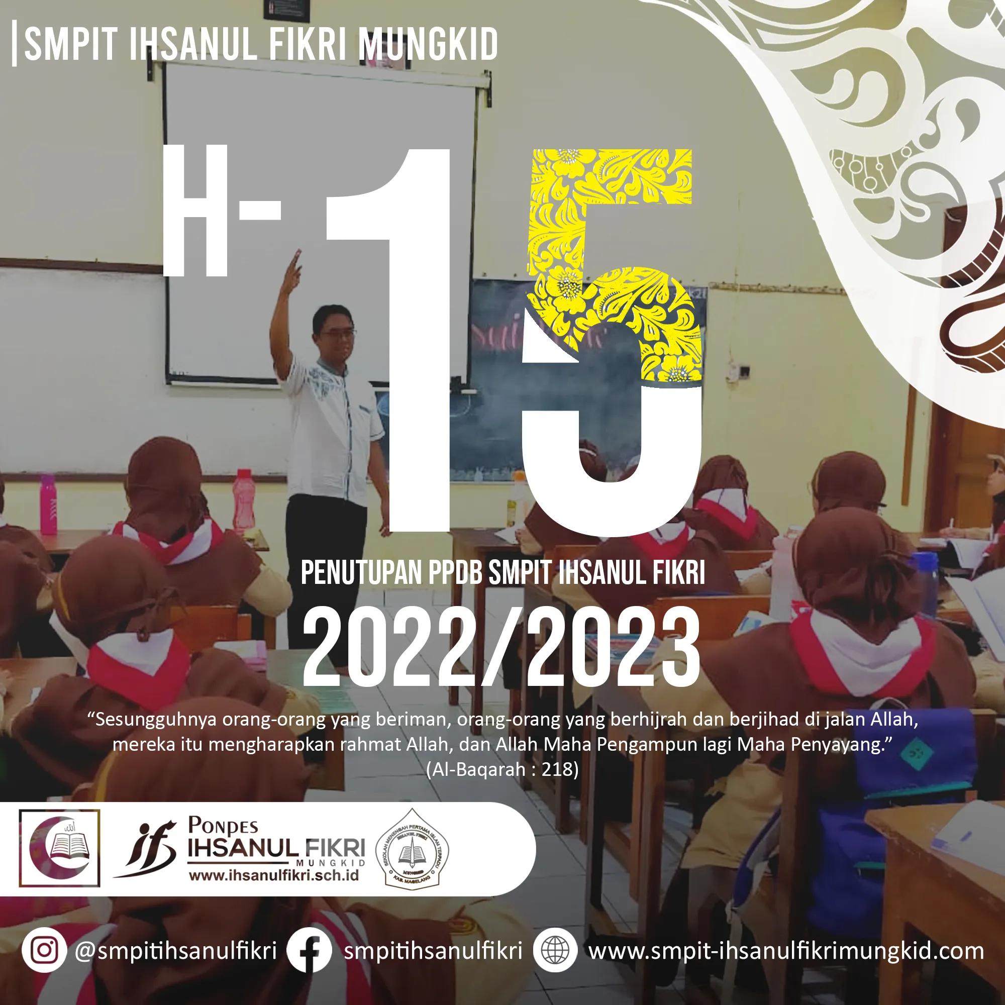 SMPIT Ihsanul Fikri adalah salah satu sekolah berbasis boarding school yang memiliki keungulan baik dibidang akedemik, ekstrakulikuler, dan fasilitas. Dalam bidang akademik SMPIT Ihsanul Fikri mengembangkan kurikulum dengan membentuk 3 kelas perminatan yang akan mencetak anak- anak menjadi generasi yang kreatif, inovatif , memiliki wawasan global, unggul, terampil dalam alquran dan berkarakter islami sesuai dengan visi dan misi sekolah. Adapun 3 kelas peminatan yaitu : 1. Kelas tahfidz 2. Kelas saintek 3. Kelas bahasa. Adapun untuk fasilitas sarana prasarana penunjang sangat mumpuni seperti, perpustakaan, laboratorium bahasa, laboratorium Ipa, laboratorium komputer, Gor, Lapangan Futsal, lapangan voli, dan dapur. Untuk sistem pembelajaran online SMPIT Ihsanul Fikri mengembangkan sistem edufikri ( media pembelajaran berbasis website ) yang memudahkan peserta didik dalam memahami materi dan pengumpulan tugas. Oleh karena itu segera daftarkan putra- putri bapak/ ibu ke SMPIT Ihsanul Fikri melalui laman https://smpit-ihsanulfikrimungkid.com