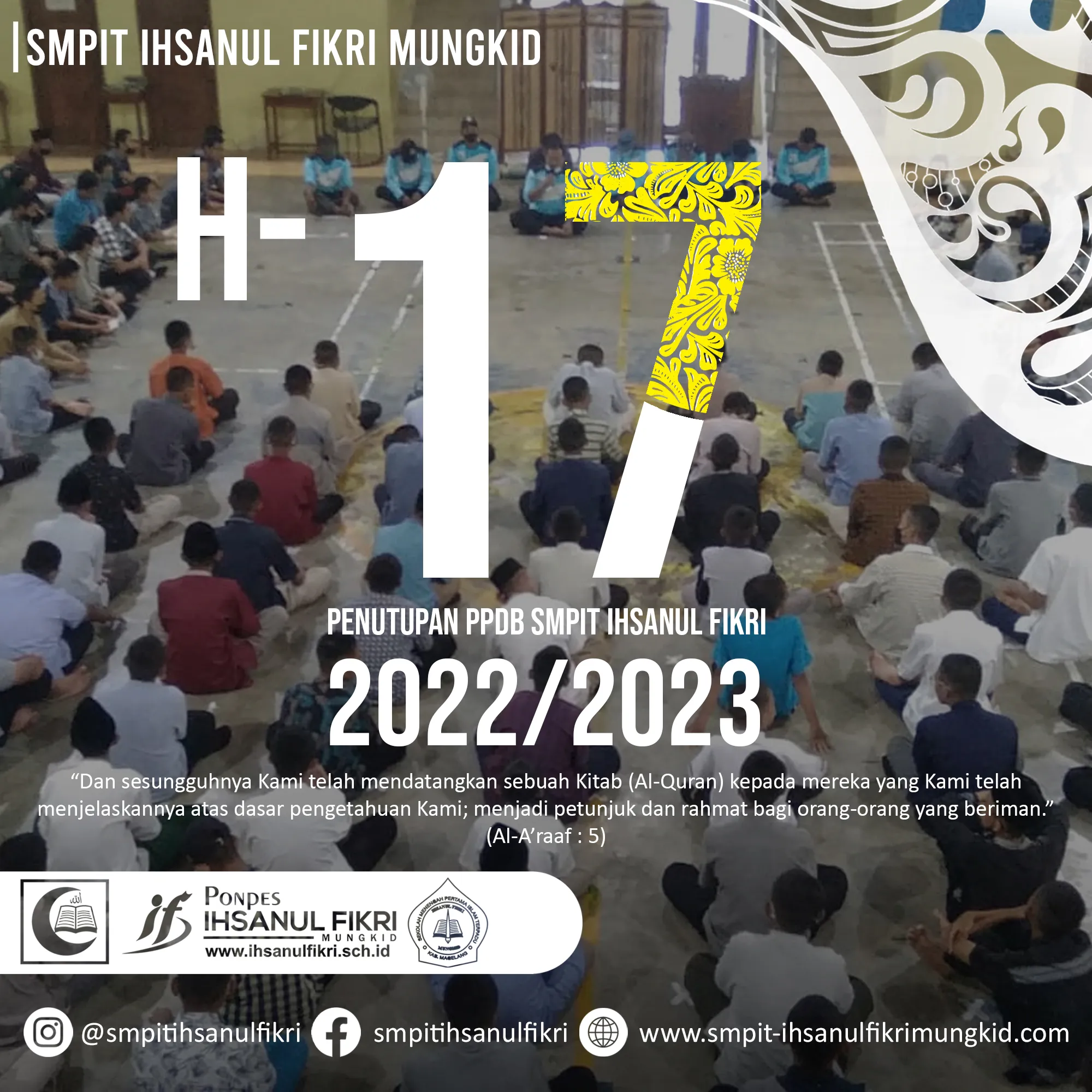 SMPIT Ihsanul Fikri adalah salah satu sekolah berbasis boarding school yang memiliki keungulan baik dibidang akedemik, ekstrakulikuler, dan fasilitas. Dalam bidang akademik SMPIT Ihsanul Fikri mengembangkan kurikulum dengan membentuk 3 kelas perminatan yang akan mencetak anak- anak menjadi generasi yang kreatif, inovatif , memiliki wawasan global, unggul, terampil dalam alquran dan berkarakter islami sesuai dengan visi dan misi sekolah. Adapun 3 kelas peminatan yaitu : 1. Kelas tahfidz 2. Kelas saintek 3. Kelas bahasa. Adapun untuk fasilitas sarana prasarana penunjang sangat mumpuni seperti, perpustakaan, laboratorium bahasa, laboratorium Ipa, laboratorium komputer, Gor, Lapangan Futsal, lapangan voli, dan dapur. Untuk sistem pembelajaran online SMPIT Ihsanul Fikri mengembangkan sistem edufikri ( media pembelajaran berbasis website ) yang memudahkan peserta didik dalam memahami materi dan pengumpulan tugas. Oleh karena itu segera daftarkan putra- putri bapak/ ibu ke SMPIT Ihsanul Fikri melalui laman https://smpit-ihsanulfikrimungkid.com