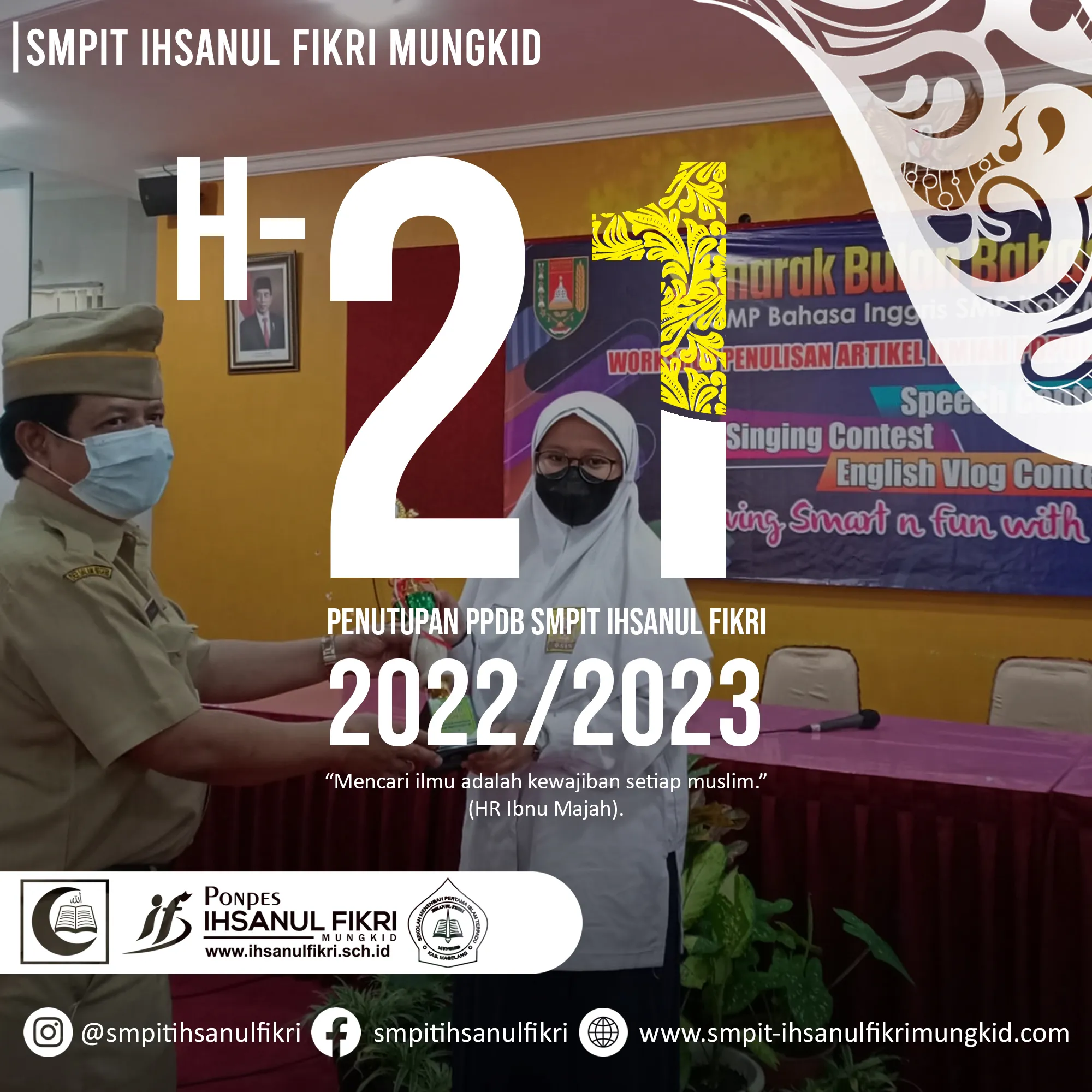 SMPIT Ihsanul Fikri adalah salah satu sekolah berbasis boarding school yang memiliki keungulan baik dibidang akedemik, ekstrakulikuler, dan fasilitas. Dalam bidang akademik SMPIT Ihsanul Fikri mengembangkan kurikulum dengan membentuk 3 kelas perminatan yang akan mencetak anak- anak menjadi generasi yang kreatif, inovatif , memiliki wawasan global, unggul, terampil dalam alquran dan berkarakter islami sesuai dengan visi dan misi sekolah. Adapun 3 kelas peminatan yaitu : 1. Kelas tahfidz 2. Kelas saintek 3. Kelas bahasa. Adapun untuk fasilitas sarana prasarana penunjang sangat mumpuni seperti, perpustakaan, laboratorium bahasa, laboratorium Ipa, laboratorium komputer, Gor, Lapangan Futsal, lapangan voli, dan dapur. Untuk sistem pembelajaran online SMPIT Ihsanul Fikri mengembangkan sistem edufikri ( media pembelajaran berbasis website ) yang memudahkan peserta didik dalam memahami materi dan pengumpulan tugas. Oleh karena itu segera daftarkan putra- putri bapak/ ibu ke SMPIT Ihsanul Fikri melalui laman https://smpit-ihsanulfikrimungkid.com