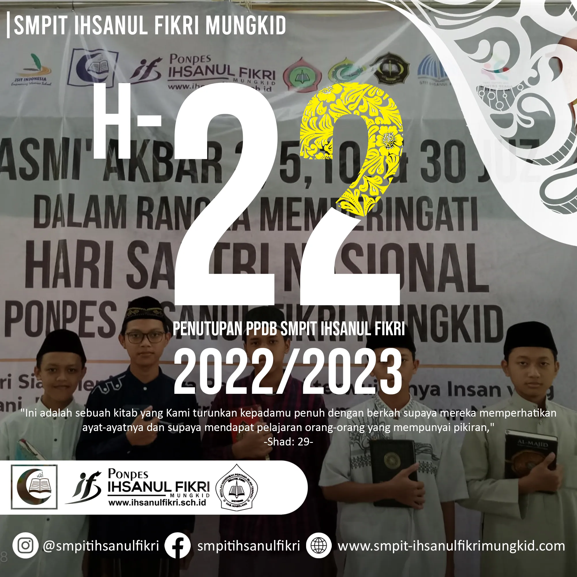 SMPIT Ihsanul Fikri adalah salah satu sekolah berbasis boarding school yang memiliki keungulan baik dibidang akedemik, ekstrakulikuler, dan fasilitas. Dalam bidang akademik SMPIT Ihsanul Fikri mengembangkan kurikulum dengan membentuk 3 kelas perminatan yang akan mencetak anak- anak menjadi generasi yang kreatif, inovatif , memiliki wawasan global, unggul, terampil dalam alquran dan berkarakter islami sesuai dengan visi dan misi sekolah. Adapun 3 kelas peminatan yaitu : 1. Kelas tahfidz 2. Kelas saintek 3. Kelas bahasa. Adapun untuk fasilitas sarana prasarana penunjang sangat mumpuni seperti, perpustakaan, laboratorium bahasa, laboratorium Ipa, laboratorium komputer, Gor, Lapangan Futsal, lapangan voli, dan dapur. Untuk sistem pembelajaran online SMPIT Ihsanul Fikri mengembangkan sistem edufikri ( media pembelajaran berbasis website ) yang memudahkan peserta didik dalam memahami materi dan pengumpulan tugas. Oleh karena itu segera daftarkan putra- putri bapak/ ibu ke SMPIT Ihsanul Fikri melalui laman https://smpit-ihsanulfikrimungkid.com