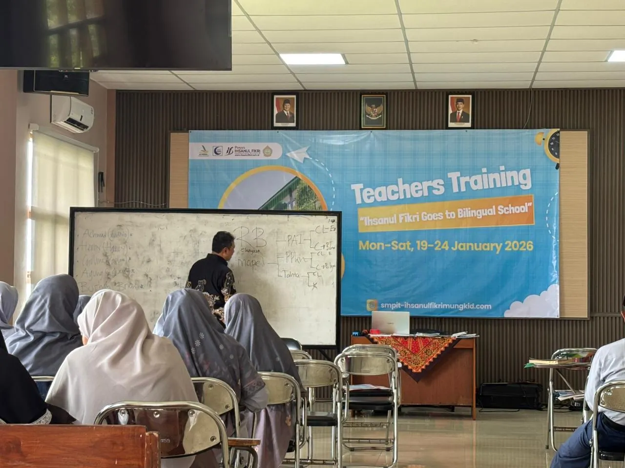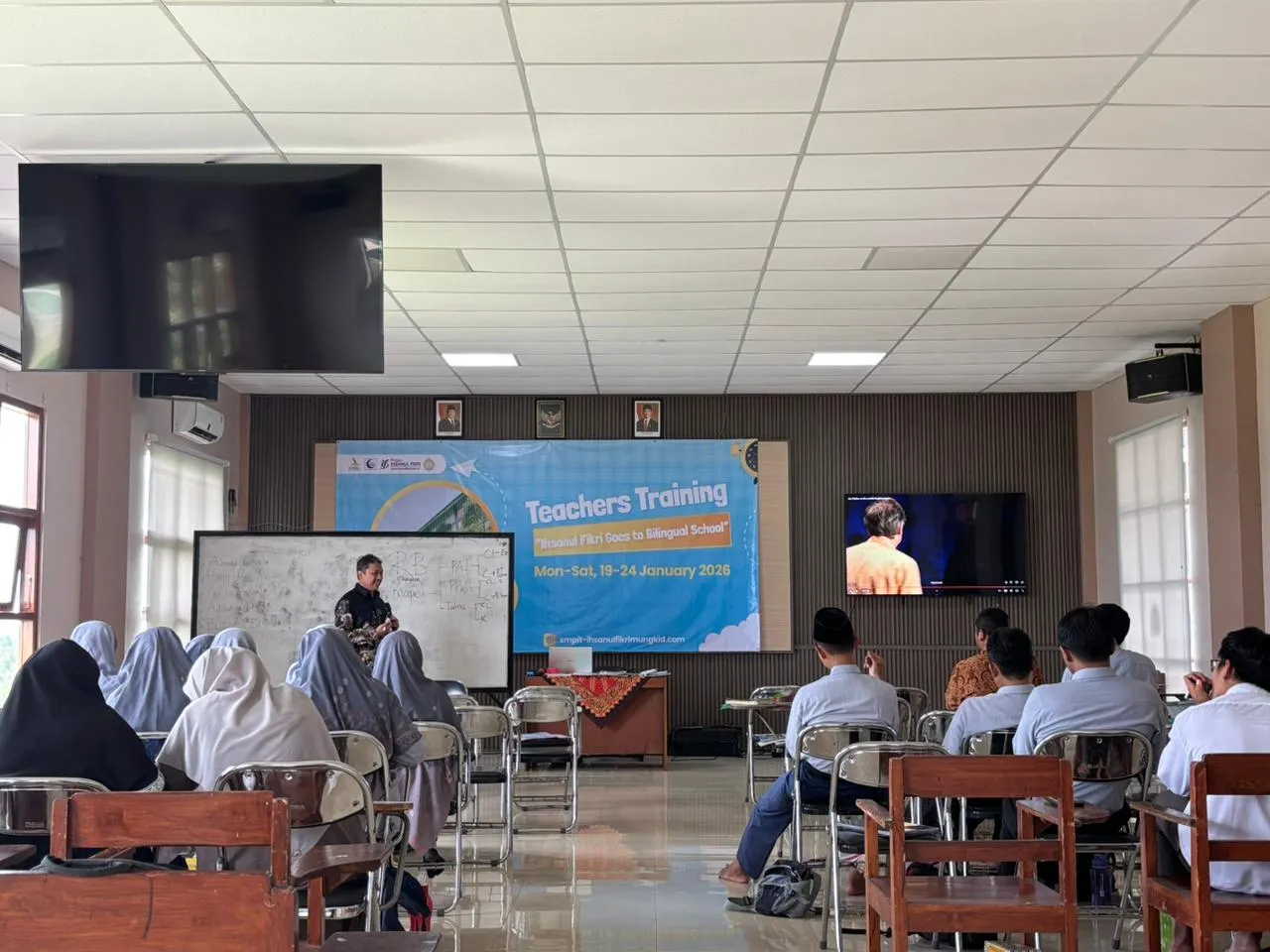 Kegiatan yang berpusat di Gedung Haji Yusuf Asy’ari ini merupakan kelanjutan dari rangkaian pelatihan yang telah berjalan secara bertahap sejak September 2025. Kali ini, sekolah menggandeng BLESSED CONSULTANT sebagai fasilitator profesional untuk memastikan standar kualitas program bilingual tersebut.